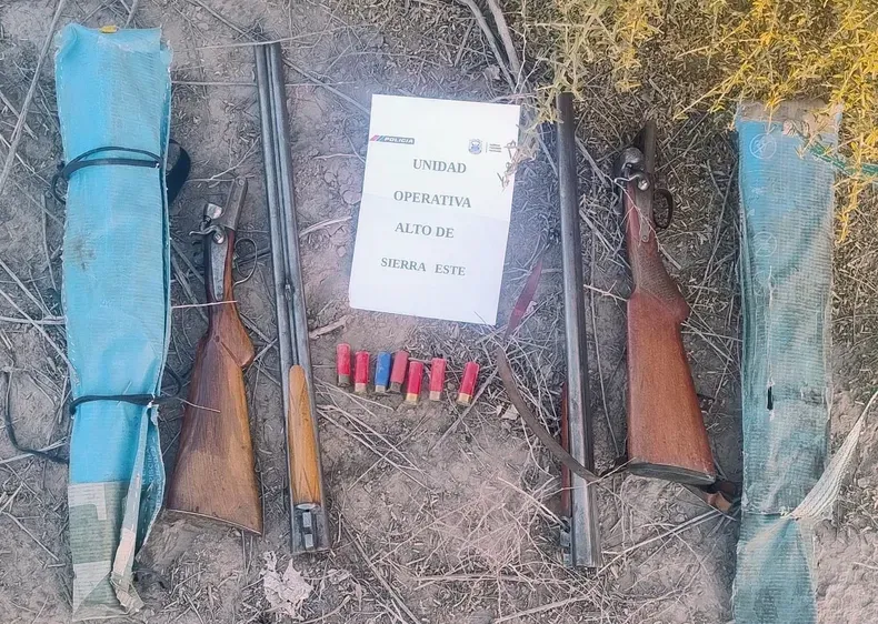 La sorpresa para los efectivos se produjo cuando al revisar lo que segundos antes había arrojado los sujetos, encontraron dos escopetas de doble caño calibre 16 con cartuchos de plomo. Al ser interrogados, los hombres admitieron que se encontraban cazando animales en la zona y que no contaban con ningún tipo de autorización para portar armas.