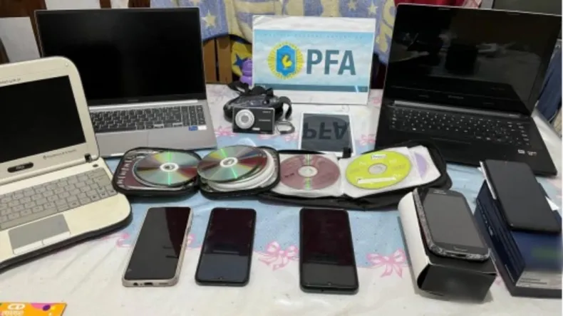Durante los procedimientos referidos, un hombre argentino de 67 años de edad fue detenido. Asimismo, se incautaron varias dosis de clorhidrato de cocaína, 3 cámaras fotográficas que utilizaba para captar las imágenes de las damnificadas, 6 computadoras, un monitor, una Tablet, varios cd´s, dvd´s y blue ray grabados, doce teléfonos celulares, una moto, un automóvil y demás elementos de interés para la causa.