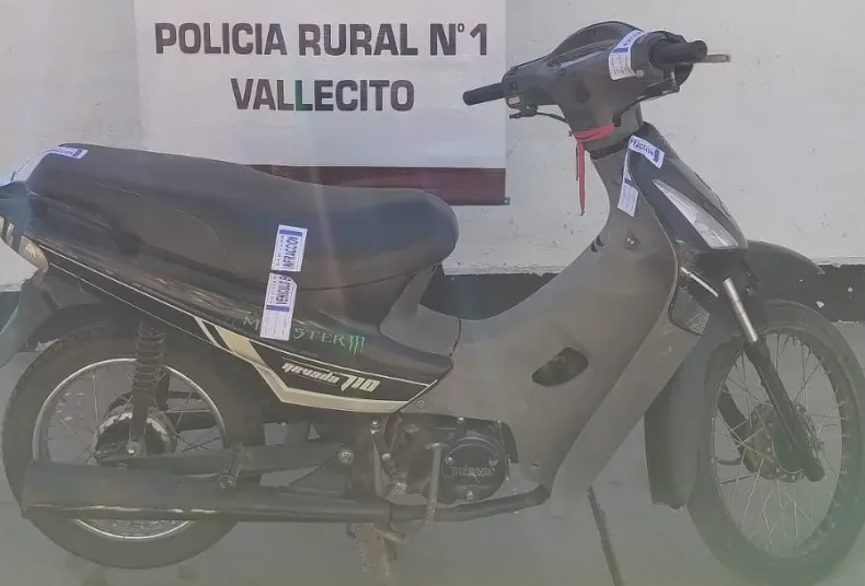 Personal de la Unidad Rural 1 de Vallecito logró secuestrar este martes una motocicleta que tenía pedido de captura por hurto calificado y detuvo a sus dos ocupantes. El hecho ocurrió durante una recorrida por la Ruta Nacional 141, a la altura de la Curva del 50.