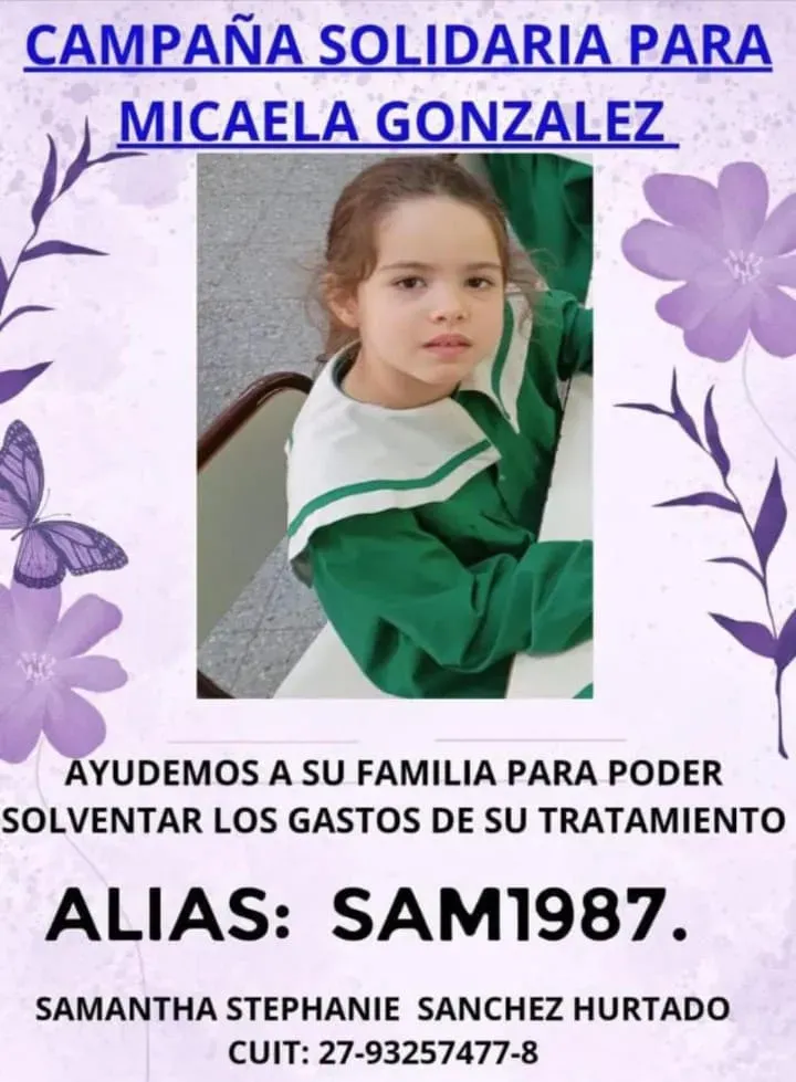 La fuerza de una familia que se aferra a la vida con todo sufre desde el día en el que supieron que "Mica", la nena de 5 años padecía de un agresivo tumor encefálico (Bio difusor de tronco encefálico, nombre científico), ya que le afecta sus funciones vitales como la respiración, el corazón y el sistema digestivo.