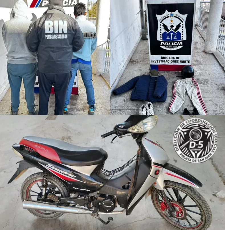 Dos sujetos que habían sido identificados por la Policía y que, gracias al trabajo del personal de la Brigada de Investigaciones Norte, logró la captura de dos sujetos que estaban vinculados directamente por el robo perpetrado a un kiosco, ubicado en la plaza del barrio Güemes, en Rawson, entre otros delitos, como asaltos y robos cometidos en el departamento Chimbas.