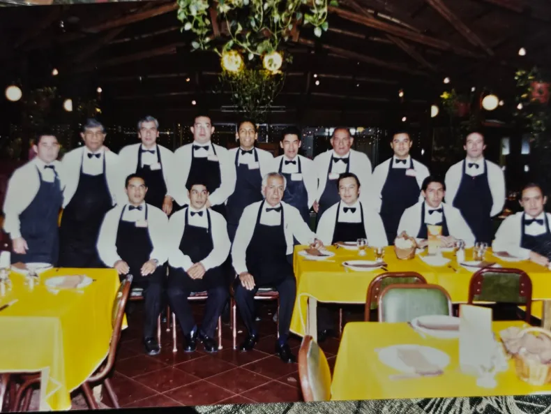 Tibiamente sonrió y dijo "Seguramente ud habla de mi padre que fue 23 años jefe de mozos de de Parrilla Las Leñas. De su billetera sacó una pequeña foto y me la mostró, el del medio es mi padre yo todavía no trabajaba allí" empieza contando ese hombre que hoy está cerca de los 60.
