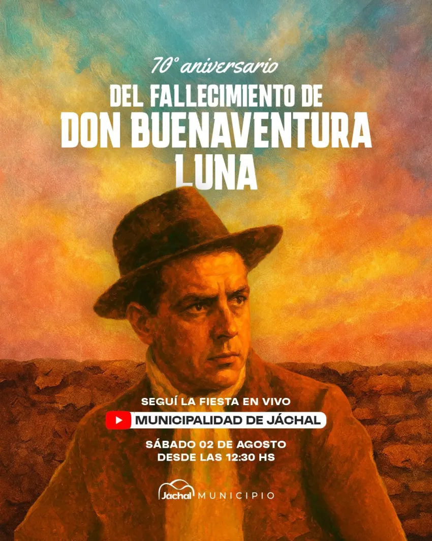 La Municipalidad de Jáchal ha previsto un link para que todas aquellas personas que quieran disfrutar de la "Fiesta del Molino Viejo" por el 70° aniversario del fallecimiento de Buenaventura Luna, que se realizará este sábado a partir de las 12.30 horas, puedan hacerlo en el lugar en donde estén.