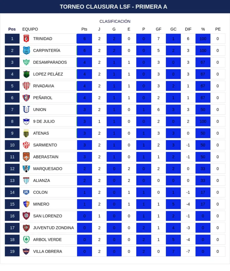 En tanto que Trinidad también ganó como visitante y lo hizo en Chimbas ante Villa Obrera por 4 a 0 con los goles de Federico Cabañas, Matías Cornejo (2) y Leonel Trozzi.