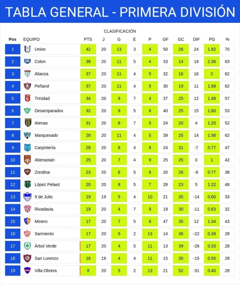 El equipo del sur sanjuanino venció 2 a 1 como visitante a San Lorenzo de Ullum. Los goles fueron marcados por Diego Luján y Nicolás Fernández para el Celeste. El descuento para el azulgrana que quedó en zona de descenso marcó Roberto Cortez de penal
