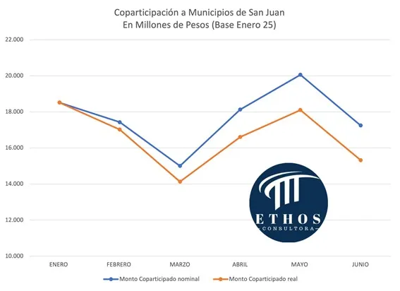 Entre enero y junio de 2025, los fondos que los municipios sanjuaninos recibieron por coparticipación perdieron en promedio un 17,3% de su poder de compra. Así lo indica un estudio realizado por Ethos Consultora, que analizó cómo se distribuyen esos recursos, qué obras se logran ejecutar con ellos y cómo impacta esa situación en cada departamento.
