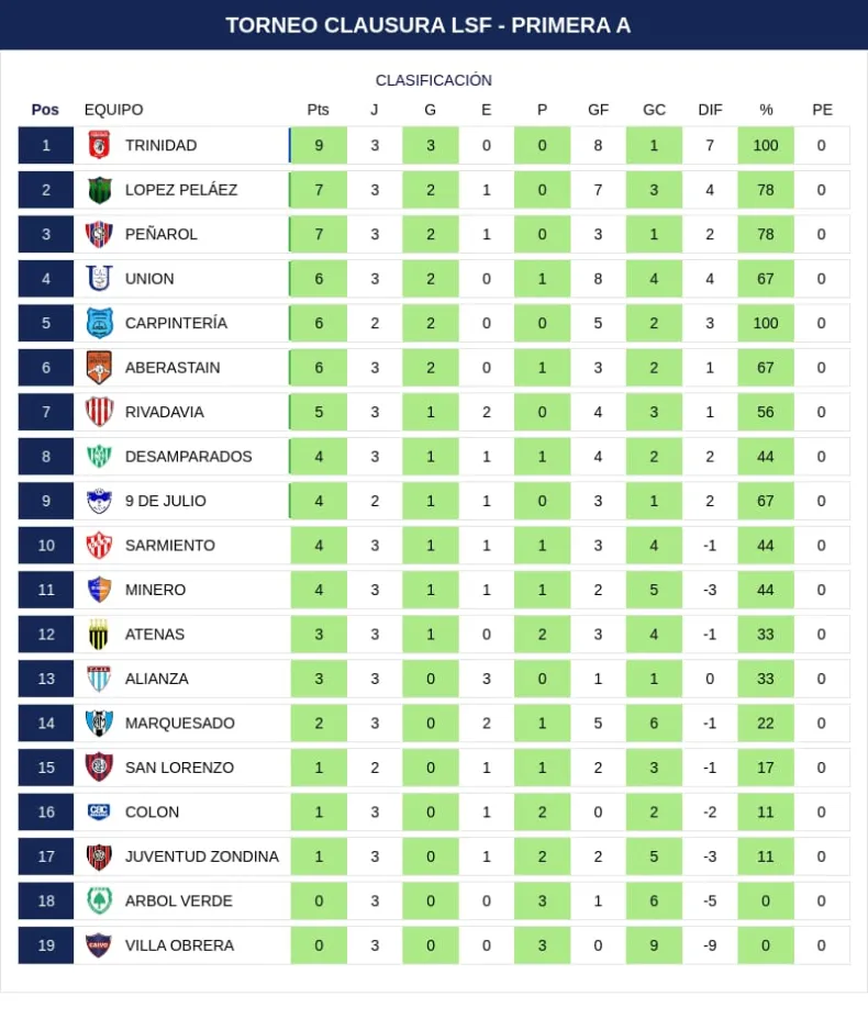 POSICIONES TORNEO CLAUSURA
