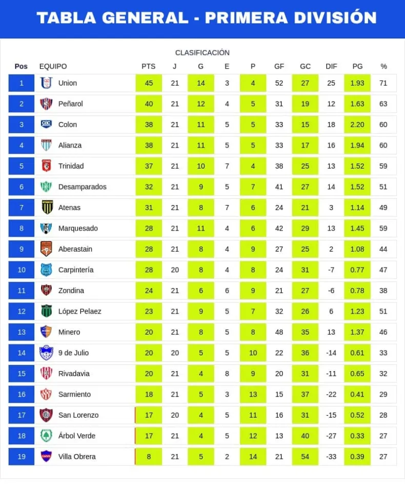 POSICIONES TABLA GENERAL