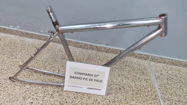 Tras un rastrillaje en el interior de aquel lugar, los efectivos de la Comisaría 37, hallaron un cuadro de bicicleta sin marca, rodado 29, sin número, despintado y con restos de pintura roja.