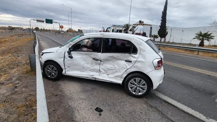 Una pareja, mayor de edad, tuvo que ser trasladado hasta el servicio de urgencia del Hospital Rawson, luego de protagonizar un accidente de tránsito en la intersección del Acceso Este y el Lateral de Circunvalación, antes de llegar a calle Gorriti, en el departamento Santa Lucía.