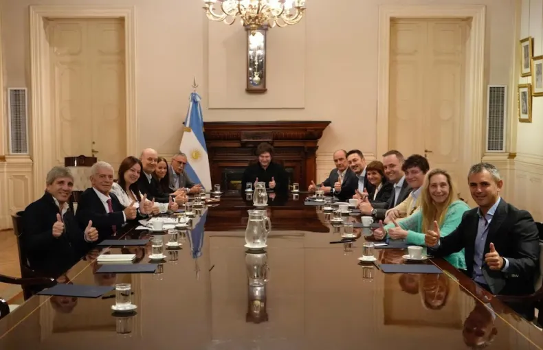En la reunión participaron el jefe de Gabinete, Guillermo Francos, y los ministros Patricia Bullrich (Seguridad), Luis Petri (Defensa), Sandra Pettovello (Capital Humano), Mario Lugones (Salud), Mariano Cúneo Libarona (Justicia), Luis Caputo (Economía), y el propio Federico Sturzenegger.