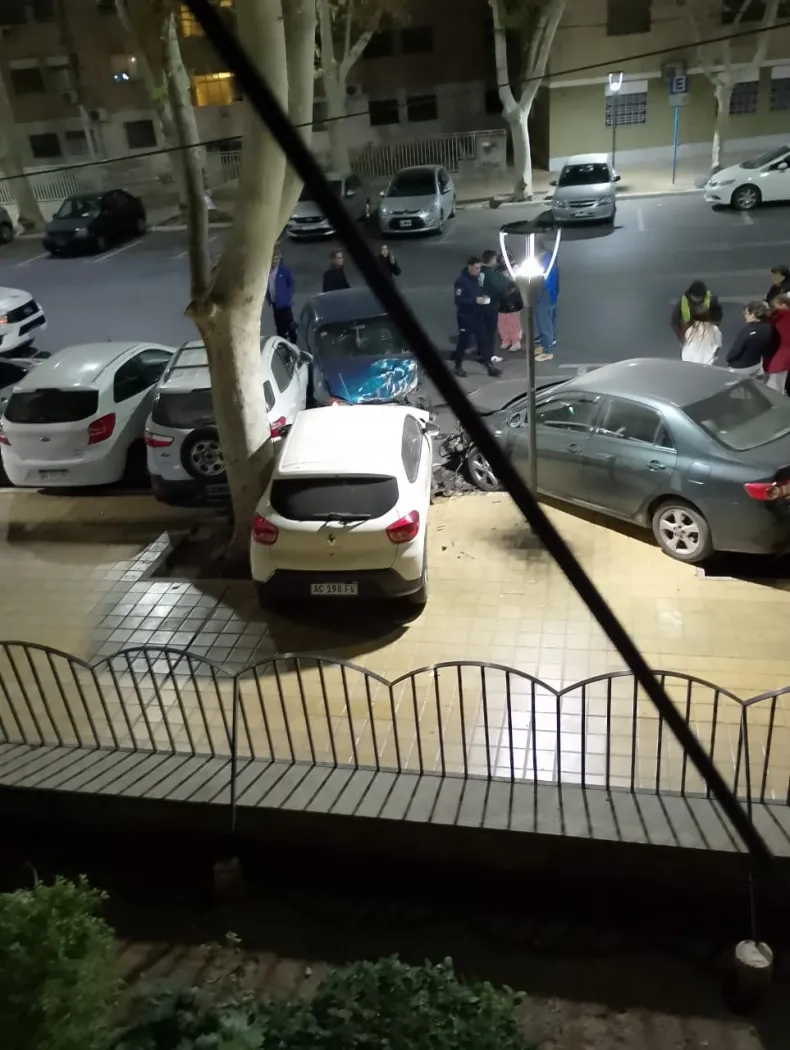 Si bien no hay datos precisos de como ocurrió el accidente, se observa la colisión de dos autos, que tienen importantes destrozos y un tercero que quedó sobre la vereda. A su vez, uno de los autos dañados impactó con otro que estaba estacionado, que a su vez golpeó a un quinto vehículo también estacionado.