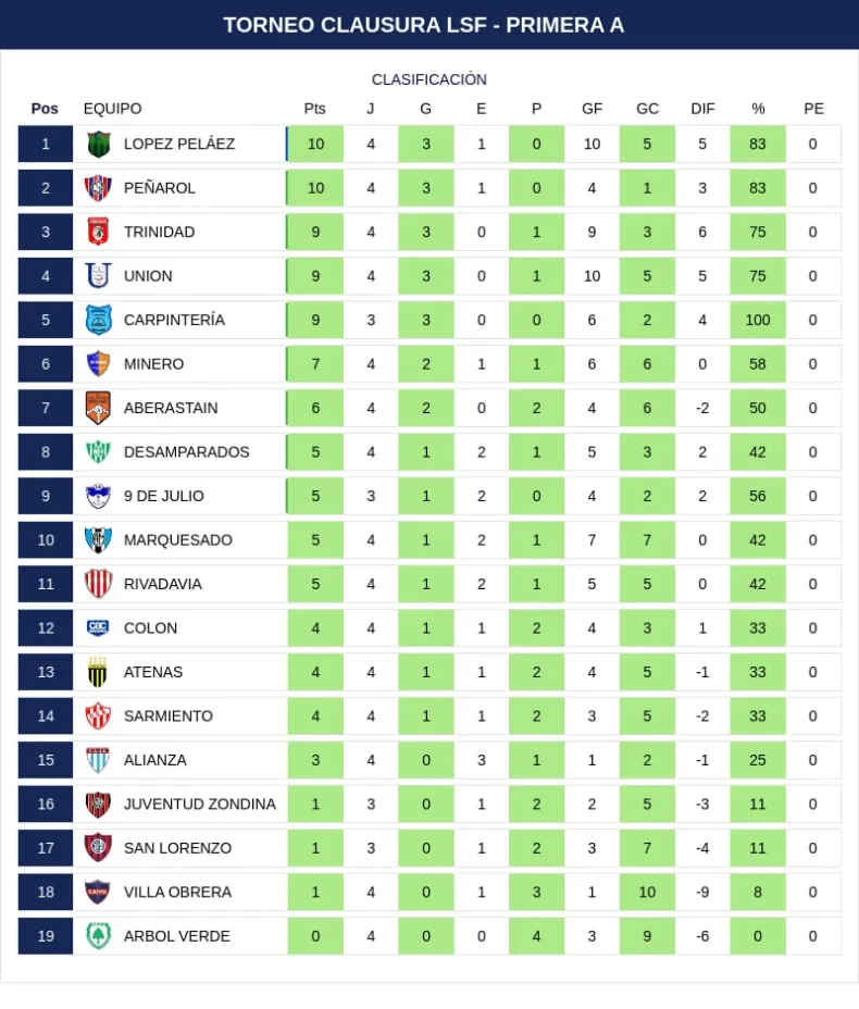 En el Barrio Cabot, Árbol Verde perdió 3 a 2 con López Peláez. Los goles para el verdinegro de Alto de Sierra que ahora es puntero del campeonato fueron convertidos por Gastón Pastrán, Javier Ramírez y Víctor Rosales. Matías Gallardo en dos ocasiones descontó para el equipo del Barrio Cabot.