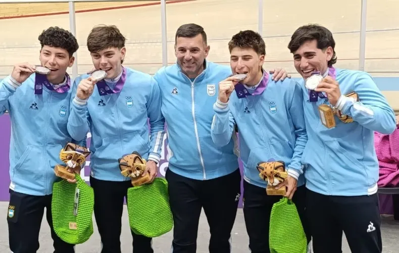 Mateo Duque, Santiago Gruñeiro, el sanjuanino Ramiro Videla y Agustín Ferrari fueron los encargados de conseguir la primera medalla de plata para la selección de pista, tras lograr un registro de 4m 10s 138 en la clasificación, llegaron a la final para medirse ante Chile (4m 03s 878).