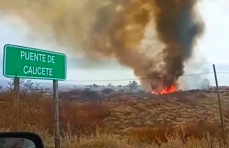 Un voraz incendio de pastizales se desató en el ingreso a Caucete, generando una gran columna de humo que se puede ver desde la ruta. El siniestro, de grandes proporciones, se inició en la zona de pastizales a la altura del cartel que marca el "Puente de Caucete".