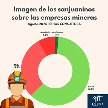 Un estudio de Ethos Consultora revela que el 62,4% de los sanjuaninos evalúa favorablemente la actividad, aunque un 37,6% mantiene una visión negativa vinculada al agua, el ambiente y los beneficios sociales.