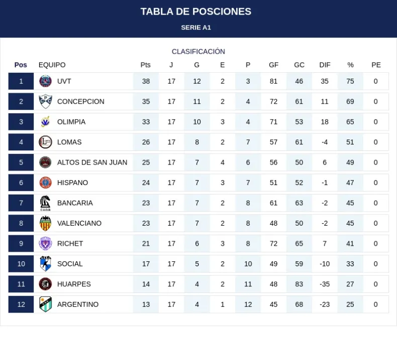 Las posiciones quedaron de la siguiente manera
