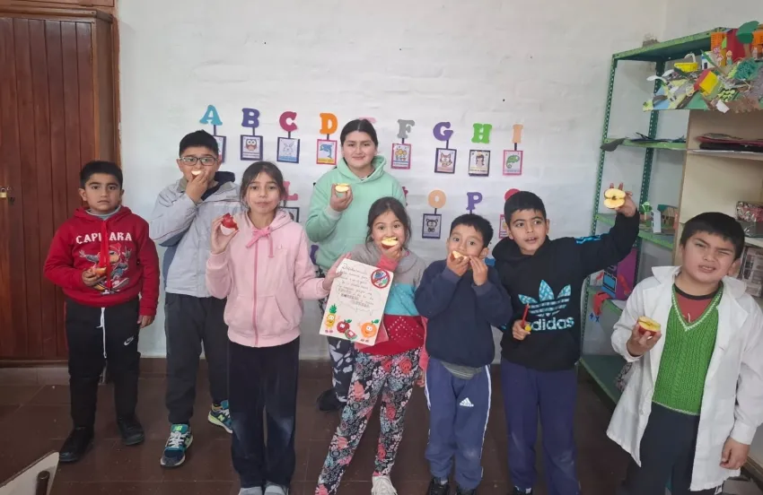 Este año, los estudiantes de la escuela realizaron una historieta con rimas y dibujos que promueven la alimentación saludable. "La historieta dice: ‘Disfrutar comiendo frutas, manzanas, peras o melón. Y en el patio de la escuela serás un campeón. Porque una fruta al día te da energía y mucha alegría’. Además, representamos con goma eva distintas frutitas y, en un costado, tapamos las golosinas para simbolizar que eso no se debe consumir", contó la docente.