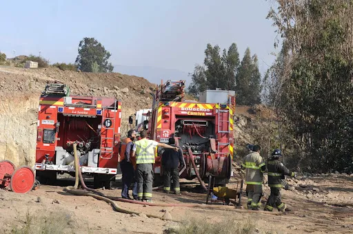 Varias dotaciones de bomberos, trabajan intensamente para controlar el incendio que afectó al menos cinco viviendas del asentamiento Pedro Echague, de Santa Lucía.