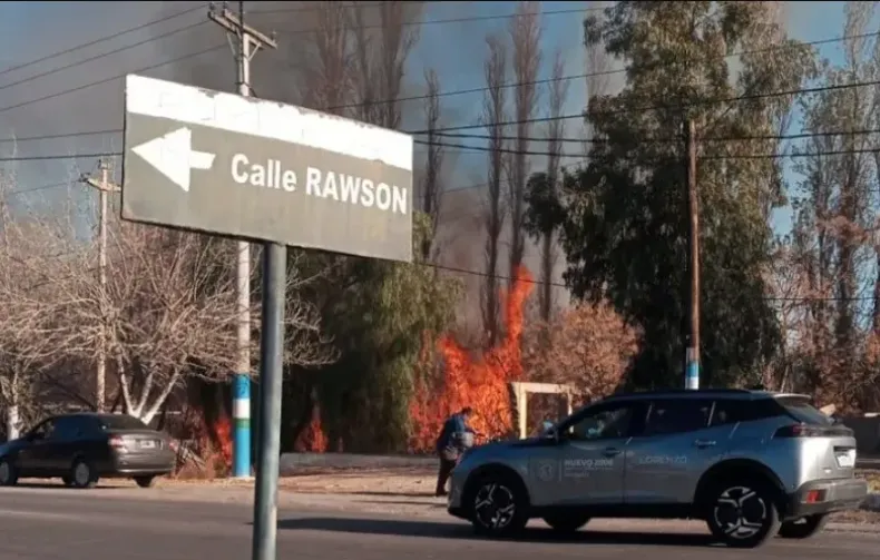 Un incendio de gran magnitud afectó una zona de pastizales en el departamento Albardón. El fuego se desató en la siesta de este miércoles en la intersección de Ruta 40 y calle Rawson, un sector con viviendas cercanas y alto tránsito.