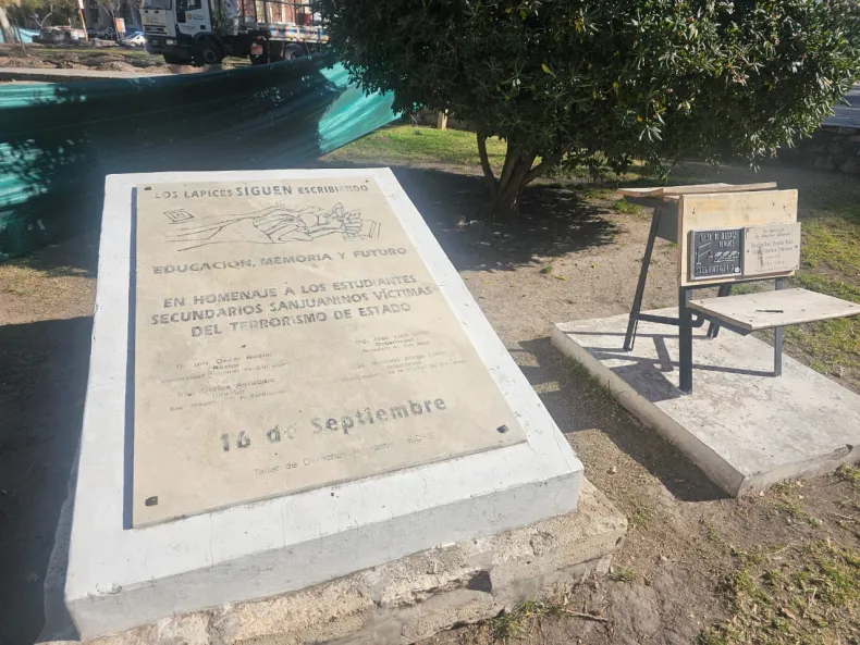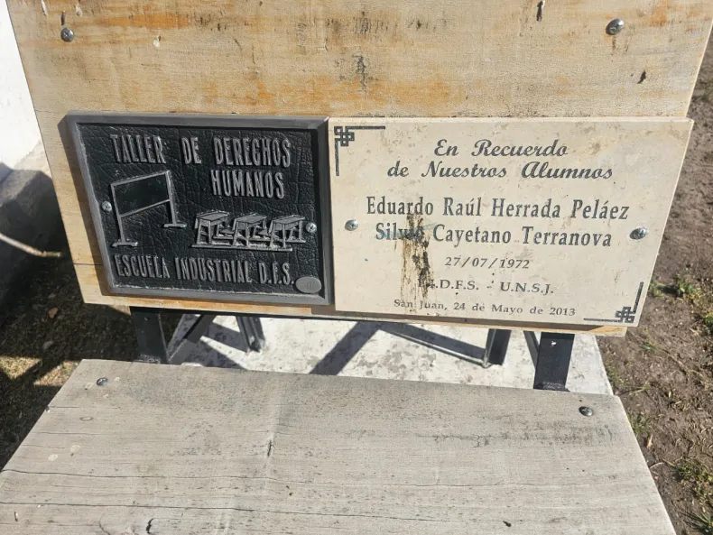 En septiembre de 2012, en la Plaza Aberastain, frente al edificio de la Industrial, fue descubierta una placa y un pupitre en homenaje a los estudiantes asesinados por los militares, un espacio para no olvidar lo que sucedió en nuestro país en aquella década de plomo de la historia argentina.