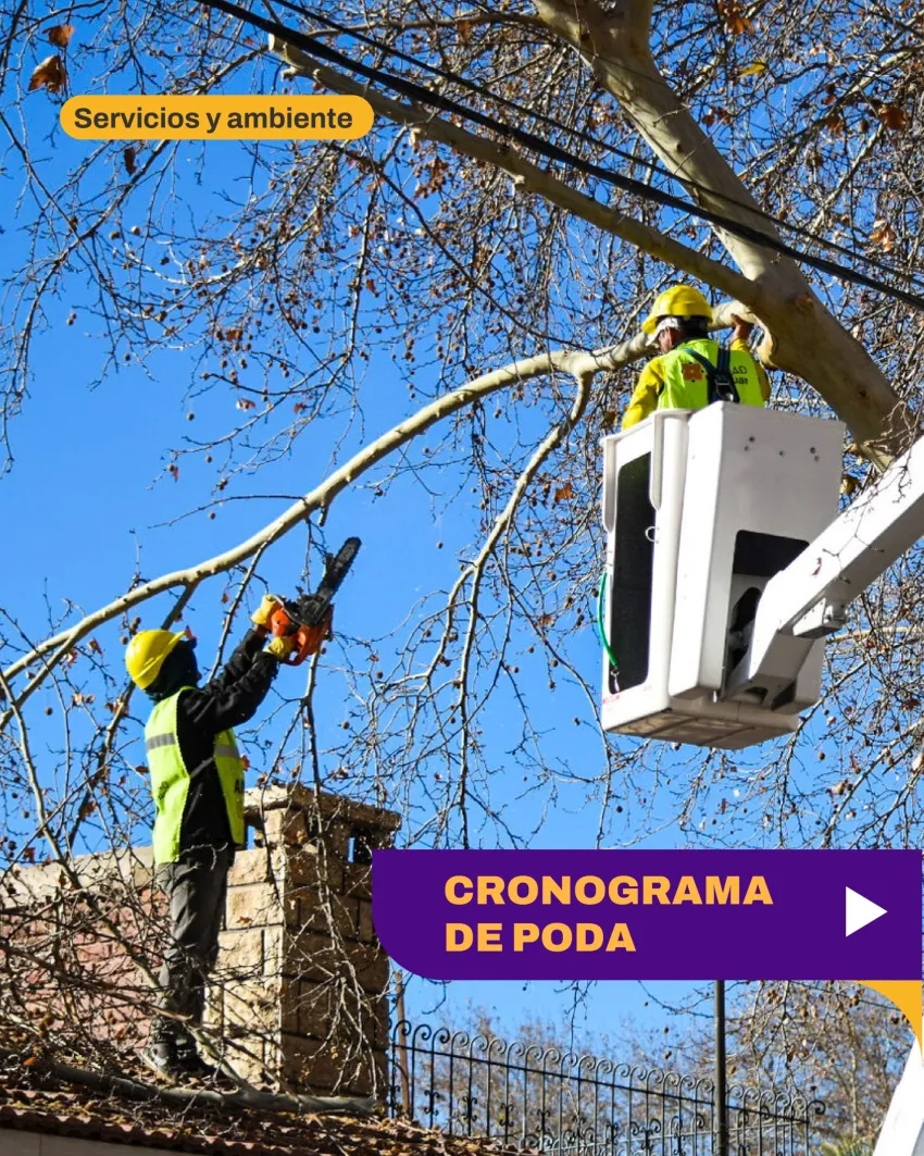 La Municipalidad de la Ciudad de San Juan, a través de la Secretaría de Servicios y Ambiente, informa el cronograma de poda que se desarrollará desde el lunes 1 hasta el domingo 7 de septiembre en distintos barrios y zonas clave del departamento. Las tareas se organizan en tres turnos diarios para optimizar el trabajo en el arbolado público.