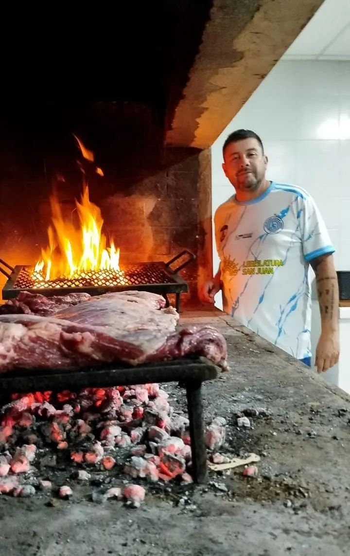 Oscar Menotti Lopez, en un albardonero que tiene un emprendimiento y fue hasta Alvear para agasajar a la selección. Llevo todo y preparó el mismo asado para todo el plantel.