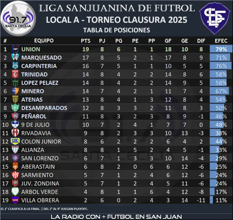 San Lorenzo de Ullum dio la nota al vencer a López Pelaez 2 a 1. El Cuervo consiguió su primera victoria en el Clausura y salió momentáneamente de la zona de descenso. Los tantos fueron convertidos por Alejo Benegas y Tobías Pérez marcaron la diferencia, mientras que Gabriel Aravena descontó para el conjunto de Alto de Sierra.