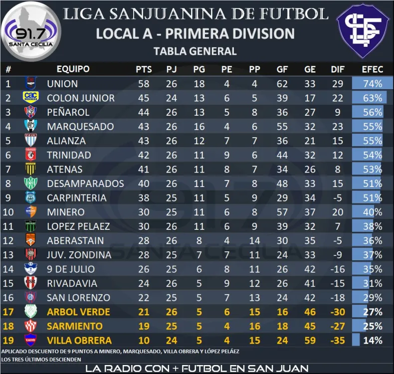 Mas al sur de Pocito, Carpintería se impuso 2 a 0 sobre Peñarol con los goles Nicolás Fernández y Abel Donoso. Este triunfo al Celeste le permite llegar al tercer escalón de la tabla de posiciones y quedó a solo tres puntos del líder Unión de Villa Krause.