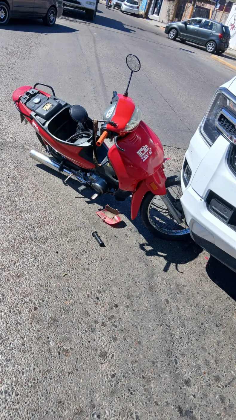 La conductora de la moto ingresó al Hospital Rawson con fractura de miembro superior derecho y politraumatismo, producido del accidente con la camioneta.
