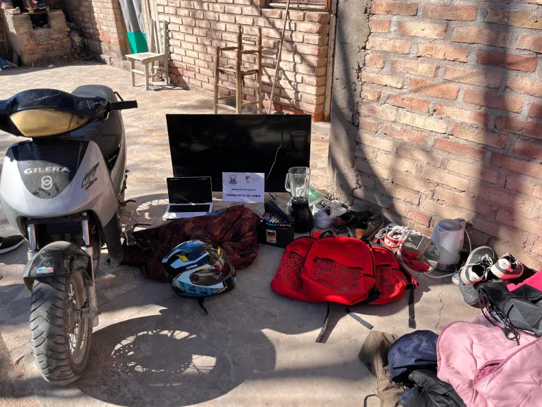 Los investigadores, por orden judicial, realizó un allanamiento en la casa del sospechoso, ubicada en avenida Caseros, donde encontraron la moto robada, electrodomésticos, ropa y otros objetos pertenecientes al damnificado.