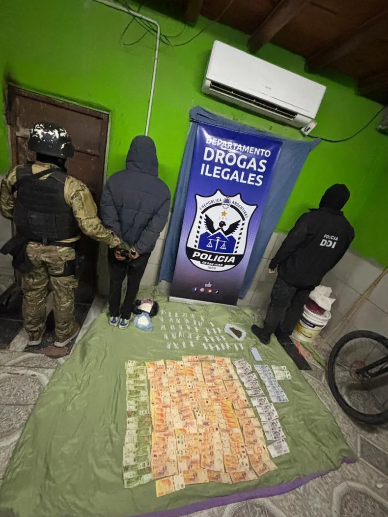 Tras varios días de trabajo investigativo, seguimiento e intercambio de información, personal policial del Departamento Drogas Ilegales, junto a los efectivos del Grupo GERAS, llevaron a cabo un procedimiento en una vivienda del barrio La Estación, del departamento Rawson, donde lograron secuestrar una importante cantidad de droga, dinero en efectivo y elementos de fraccionamiento.