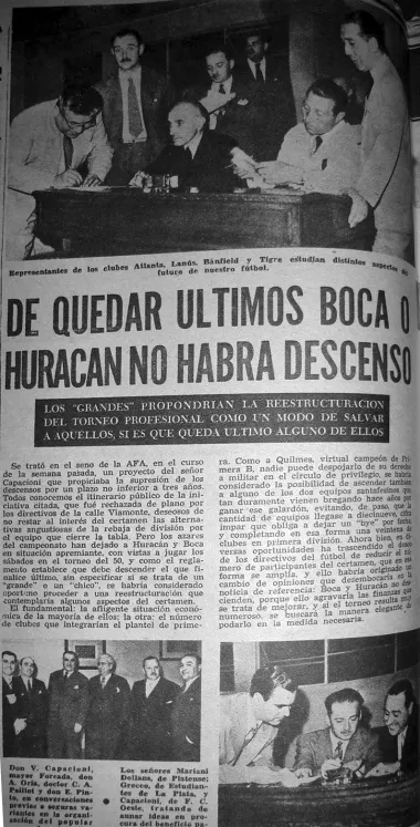 Los medios señalaban que "De quedar últimos Boca o Huracán no habrá descenso", y en la bajada indicaban que "Los grandes propondrán la reestructuración del Torneo Profesional como un modo de salvar a aquellos, si es quedan último alguno de ellos".