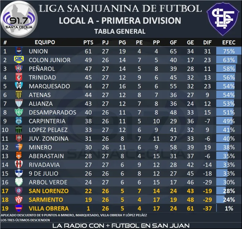 El único favorecido por el resultado es Unión de Villa Krause que siguen soledad en lo alto de la tabla.
