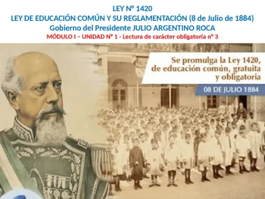 La Ley 1420 estableció la instrucción primaria obligatoria, gratuita y gradual, lo que suponía la existencia de una escuela al alcance de todos los niños del país y de cualquier sector social, con acceso a un conjunto mínimo de conocimientos también estipulados por ley.