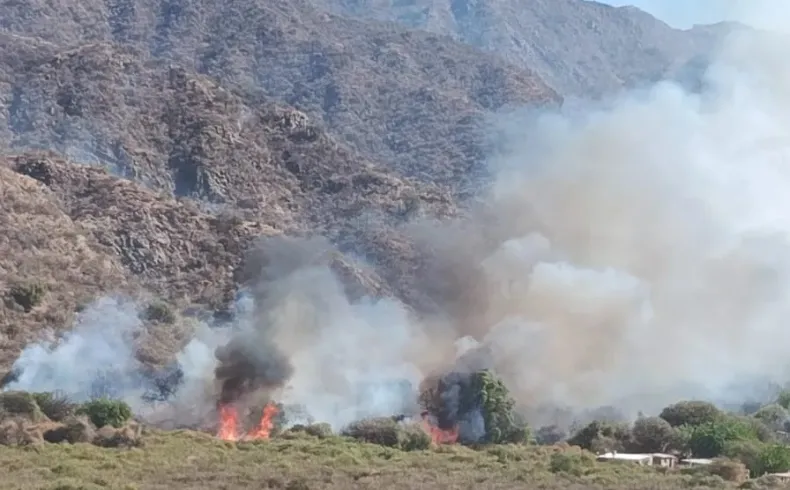 Como consecuencia del fuerte viento del sector sur, se produjo un incendio forestal que amenaza con propagarse haca varias casas de la zona. El fuego se inició con las primeras ráfagas y está afectando una zona donde se encuentran varias casas en la zona de Astíca, del departamento Valle Fértil.