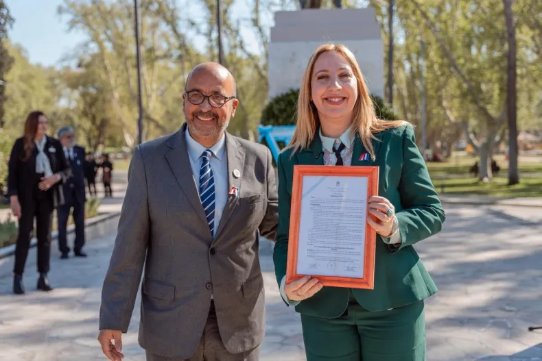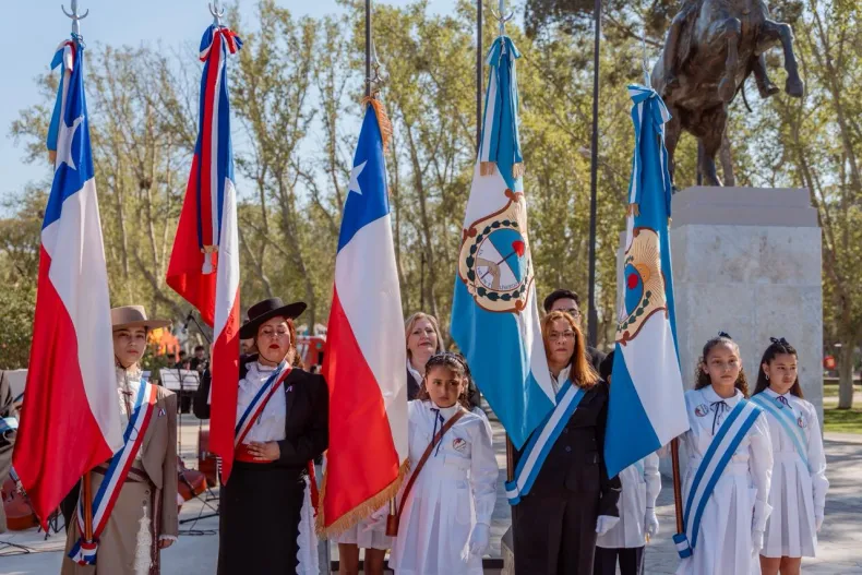 Autoridades provinciales y diplomáticas participaron del acto realizado en el monumento al Gral. San Martín, en Parque de Mayo, encabezado por la ministra de Gobierno, Laura Palma. La ceremonia incluyó la tradicional ofrenda de laureles y la entrega de una réplica de la espada de Bernardo O’Higgins.