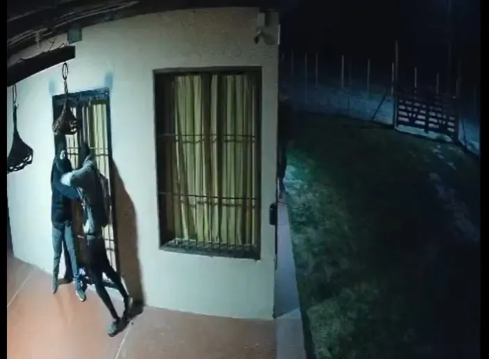 En las imágenes se observa cómo los ladrones forcejearon la puerta de rejas para luego ingresar a la vivienda y sustraer distintos objetos de valor y aires acondicionados.