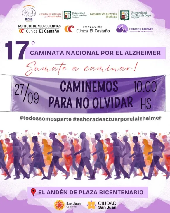 Con el lema "Caminemos para no olvidar", se realizará este sábado 27 de septiembre, a las 10:00, una marcha por la lucha contra el Alzheimer.