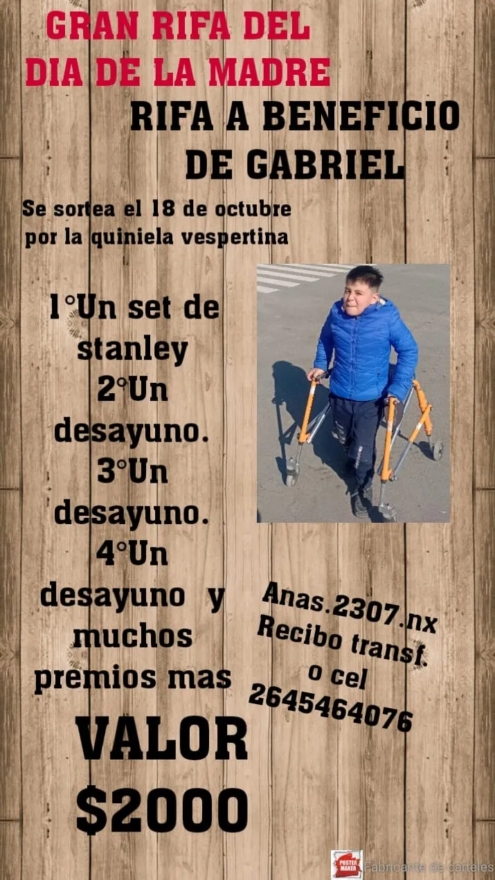 La nueva rifa va del número 000 al 999. La comunidad sanjuanina, que ya había brindado su apoyo para la operación de piernas de Gabriel, es convocada nuevamente para ayudar a la familia a enfrentar esta emergencia de salud inesperada.