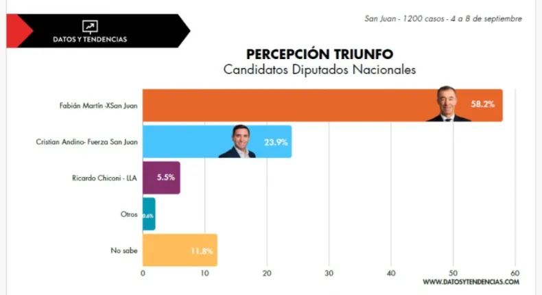 San Juan ya palpita las elecciones legislativas del 26 de octubre y una encuesta de la consultora Datos y Tendencias posiciona a Fabián Martín, de X Por San Juan , como el favorito en la carrera por una banca en el Congreso.
