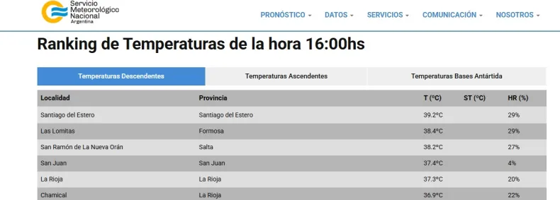 A las 15.00 la temperatura estaba en 36,9º en el gran San Juan y en ese momento se ubicaba en el 10º lugar del ranking de temperatura.