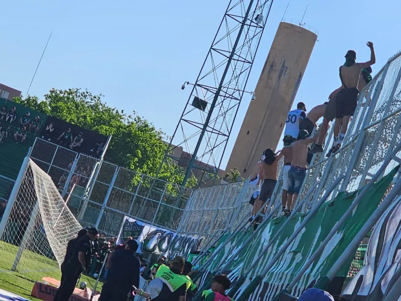 20m. Los hinchas de San Martín, en realidad seis se suben al alambrado y el partido se interrumpe