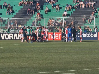 15m. Roja para Watson, una tremenda plancha del volante de San Martin, bien expulsado.