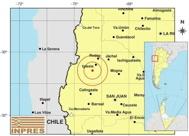 El departamento donde se reportó la leve percepción del sismo fue Iglesia, ubicado en el norte sanjuanino. No se registraron daños materiales ni víctimas.
