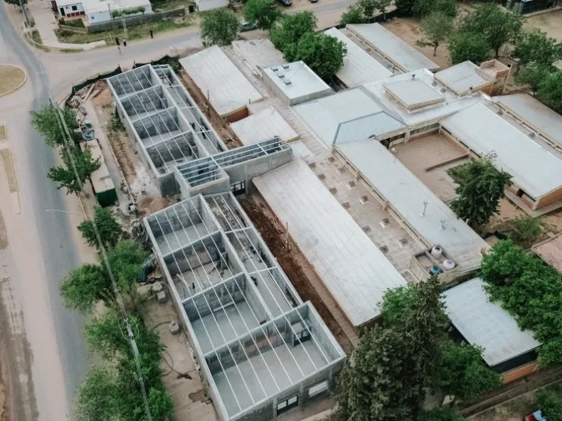 En los últimos meses se ha avanzado considerablemente con la colocación de premarcos metálicos, pisos graníticos en aulas nuevas y accesos, así como el montaje de perfiles metálicos para la estructura de techos con paneles térmicos. En junio de 2025 se entregó el núcleo sanitario contiguo al SUM y se habilitó la nueva torre de tanques en el sector sudeste, garantizando la provisión y almacenamiento de agua.