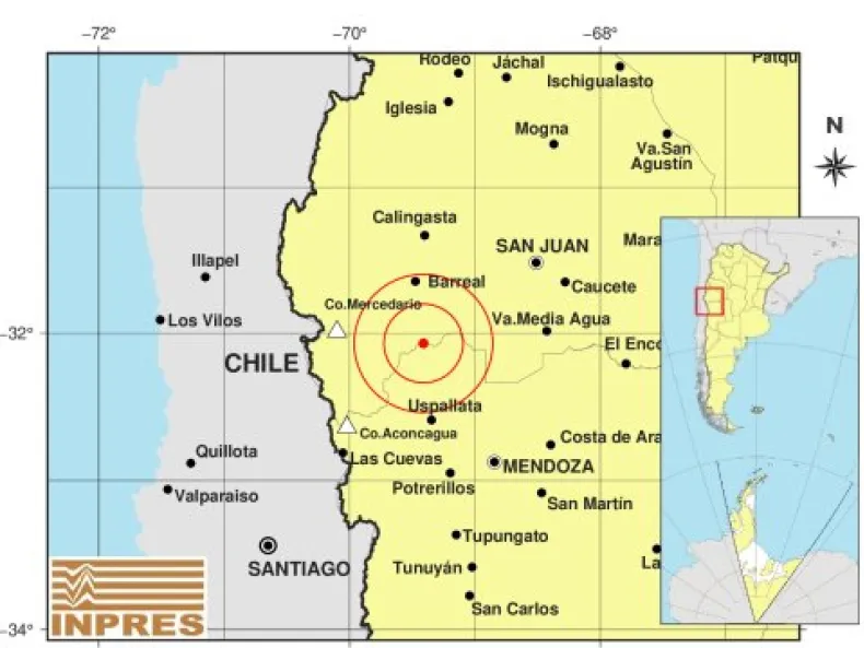 El epicentro del temblor se localizó a aproximadamente 105 kilómetros al suroeste de la ciudad de San Juan y a 48 kilómetros al sur de la localidad sanjuanina de Barreal. De acuerdo con los registros oficiales, el movimiento fue también percibido en algunos departamentos de Mendoza.