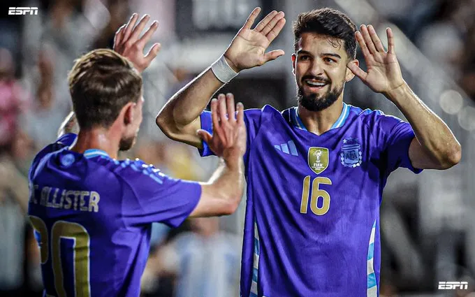 En un amistoso que se disputó en el estadio del Inter de Miami, la selección Argentina con goles de Alexis Mac Allister en dos ocasiones, Gonzalo Montiel, Echavarría en contra y dos de Lautaro Martínez venció 6 a 0 a Puerto Rico.