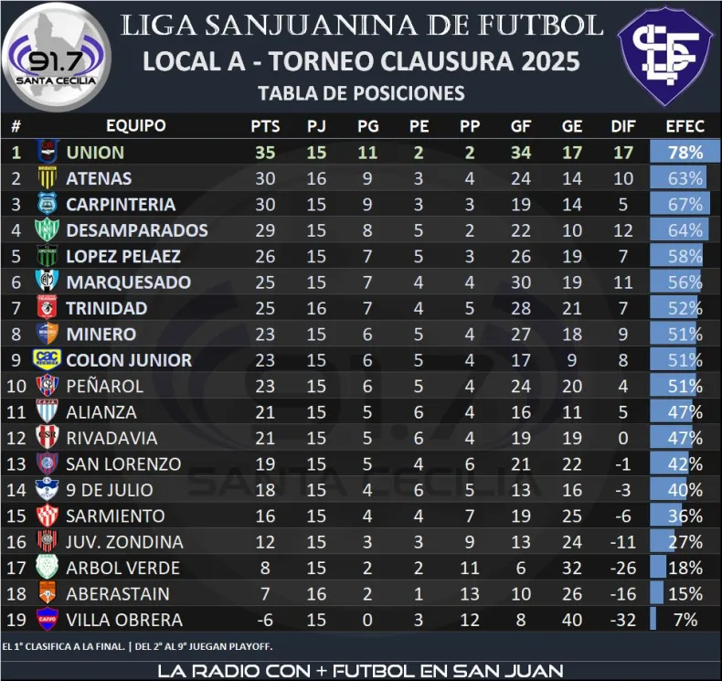 POSICIONES TORNEO CLAUSURA