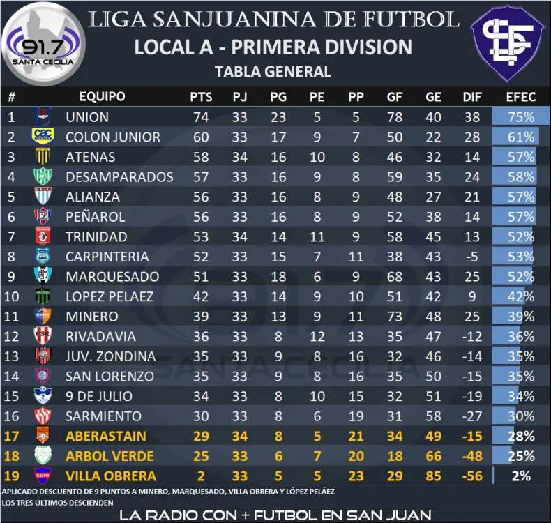 En Ullum, en un duelo clave para el descenso San Lorenzo y Árbol Verde empataron 1 a 1. Alejo Benegas puso en ventaja al Cuervo, pero Lionel Flores empató para la visita. El resultado deja al equipo del Barrio Cabot en una situación comprometida, al borde del descenso cuando restan tres fechas para el cierre de la fase regular.